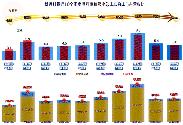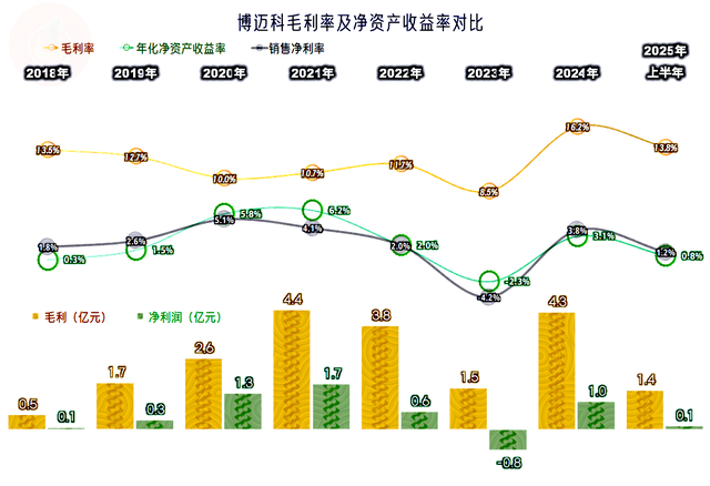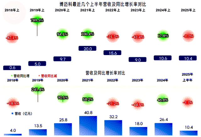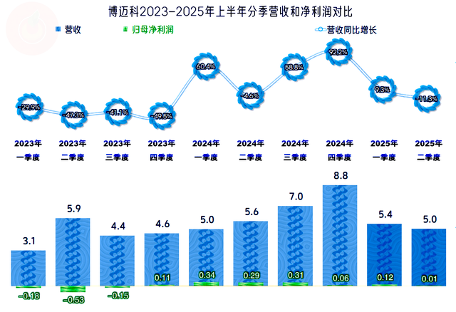 2025年上半年,博迈科的营收同比微跌了1.7%。营收在2022年和2023年持续下跌后,2024年大幅反弹,从2025年上半年的情况看,似乎不太可能持续反弹了。