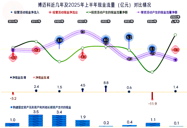 “经营活动的现金流量净额”波动也比较大,在固定资产投资规模较大的年份,需要进行净融资来补充,在投资规模下降之后,也可以进行去杠杆等操作。