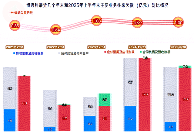 营收规模在下滑,2022年末和2023年末这方面的欠款余额都在下降,其实这样反而是更健康的。2024年的营收反弹,规模上差2021年还比较远,但2024年末,客户和供应链等,相互欠款的规模却超过了2021年末。如果是营收规模恢复至2022年的水平,这种欠款规模可能会比当年翻一番,就算毛利率相同,坏账等风险也会让业内企业吃大亏。
