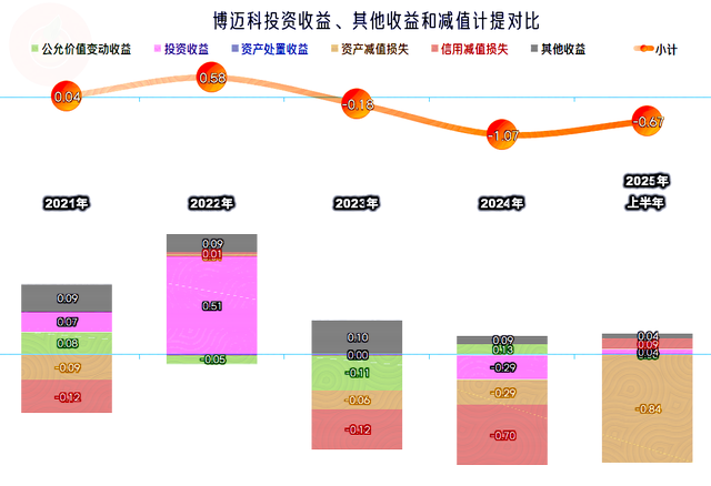 其他收益方面也有较大的影响,2024年和2025年上半年主营业务盈利空间提升,净利润表现一般的主要原因,也有这方面的净损失在扩大,“信用减值损失”和“资产减值损失”增长是关键。2024年主要是“应收账款坏账损失”高达6977万元,2025年上半年主要是“合同资产减值损失”,对于博迈科来说,合同资产主要是“已完工结算资产”。